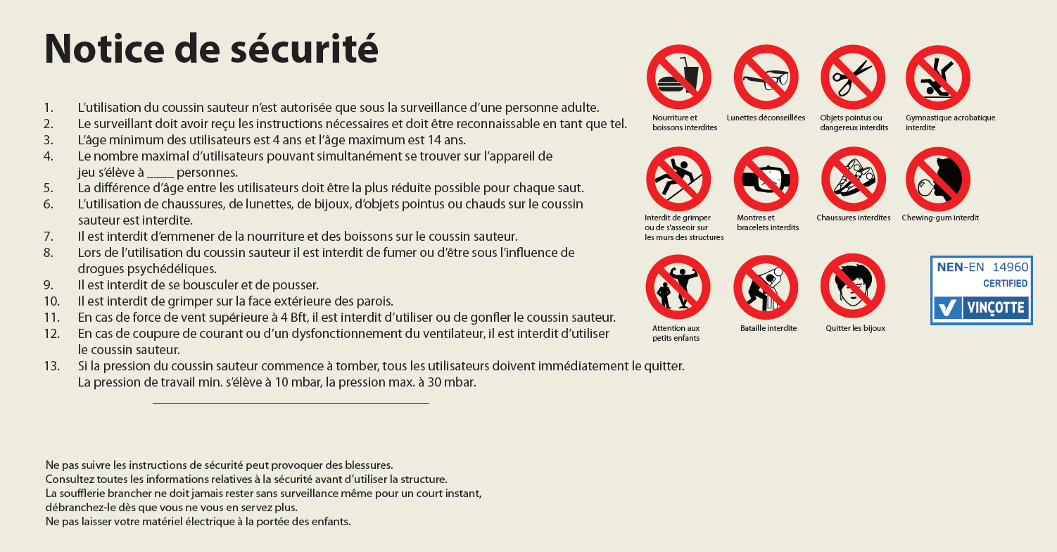 Attention: l'enlèvement des structures dans nos locaux nécessite au minimum un véhicule de type Monospace
